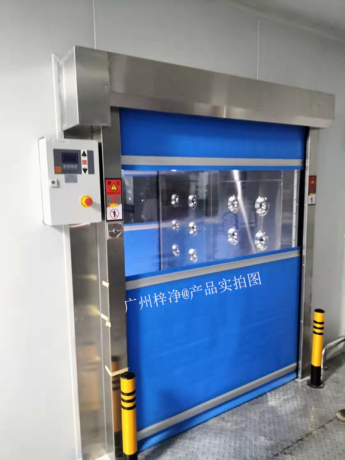 快速卷簾門風淋室:采用快速卷簾門設計,開關速度極快,僅需幾秒鐘即可完成全開的動作。這種快速響應的特性在人流較多或對潔凈度要求不特別高的場合更為適合。